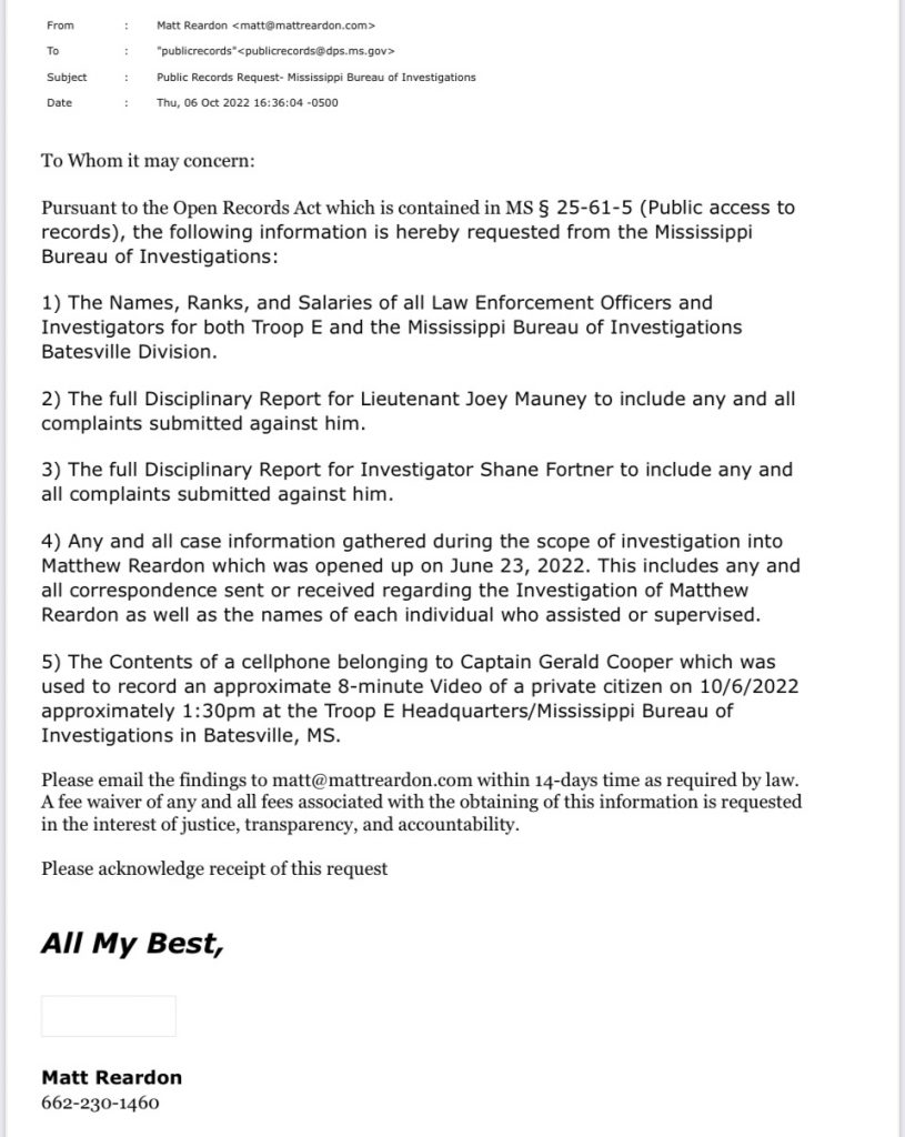 An Independent Journalist and Constitutional Rights Activist commuted to the Mississippi Bureau of Investigations office in Batesville, MS on Thursday, 10/6/2022 trying to get some answers from Lieutenant Joey Mauney or Brian Sullivan.